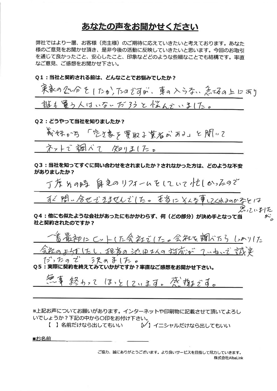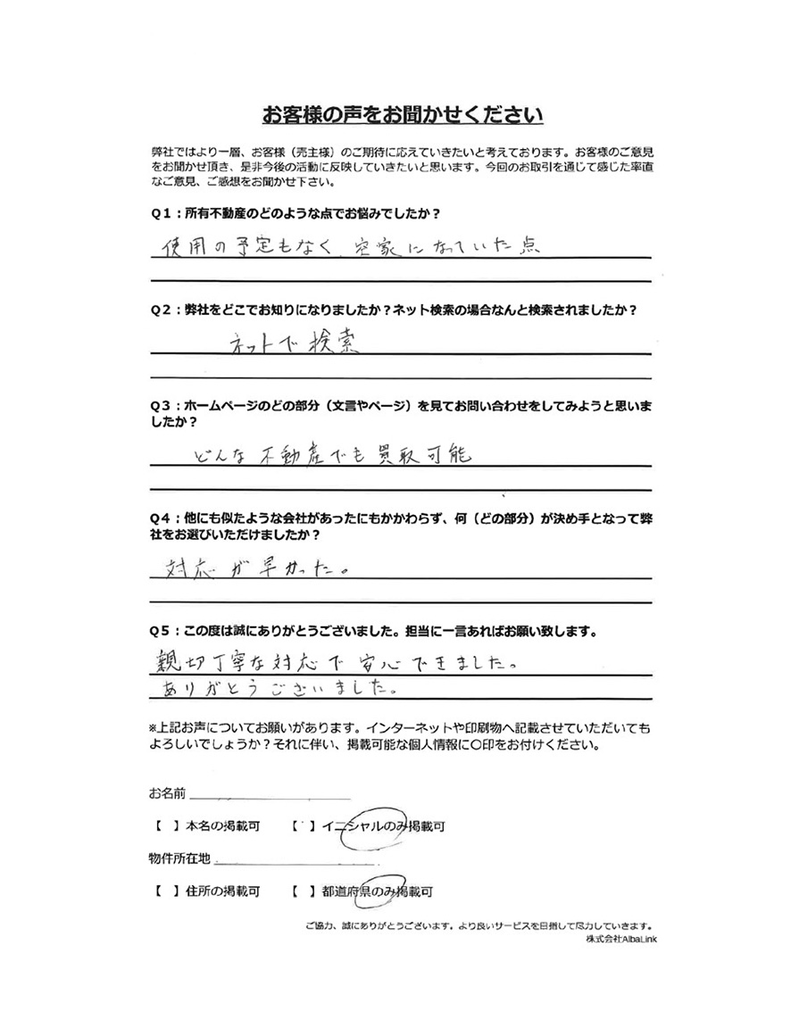 AlbaLink(アルバリンク)では、一般の個人には売りづらかったり、通常の不動産業者では買取ができなかったりするような物件でも、売主様にご納得頂ける金額で、迅速にお買取いたします。お客様とのご縁を大切にして、愛知県を拠点にエリアナンバーワンを目指します。
