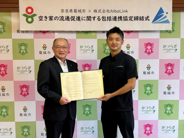 株式会社AlbaLink(アルバリンク、本社:東京都江東区、代表取締役:河田憲二、以下「AlbaLink」)は、令和7年10月10日(金)、奈良県葛城市と「空き家の流通促進に関する包括連携協定」(以下「本協定」)を正式に締結いたしました。