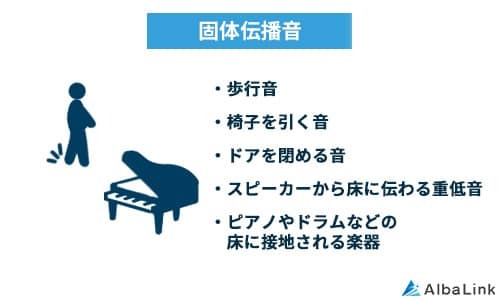 たとえば、足音やドアの開閉音などは、床や外壁を振動させて音として伝わります。