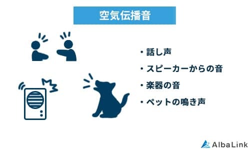騒音の伝わり方は、「空気伝播音」か「固体伝播音」で異なります。