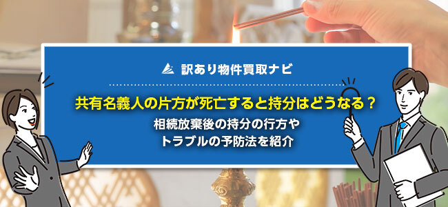 そのため、共有名義人の片方が死亡して相続放棄があった場合は、「残りの相続人の有無と人数」によって持分の行方が変わります。