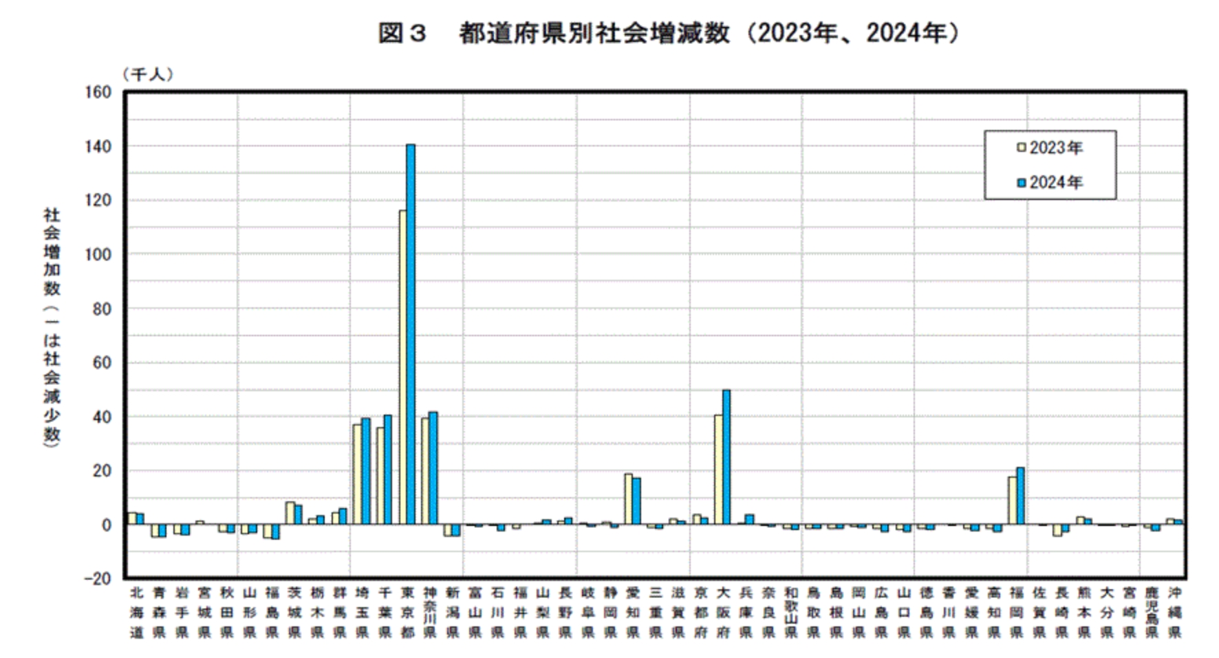 総務省が公表している住民基本台帳人口移動報告では、多くの都道府県の人口が減少していることがわかります。