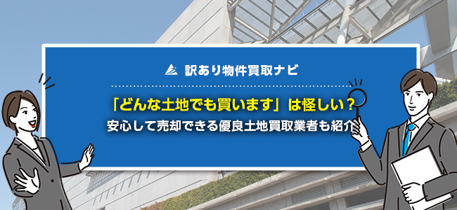 「どんな土地でも買います」と謳う業者に売却を依頼する際は、こうした悪質業者を回避する必要があります。