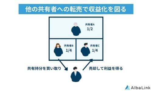 業者が共有持分を取得するもう一つの理由は、ほかの共有者に転売することで収益を得ることです。